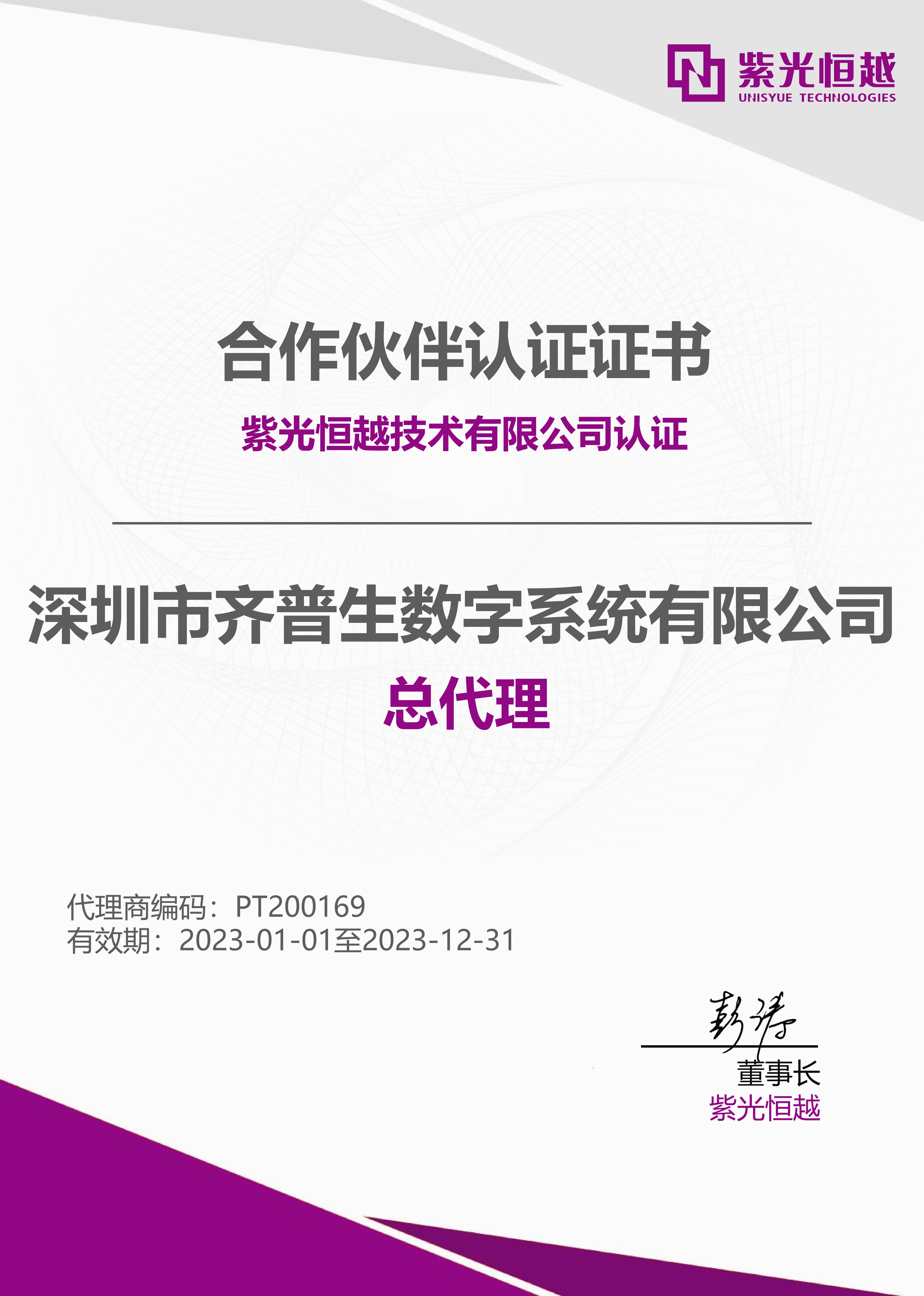 • 紫光恒越總代理證(數(shù)字公司))