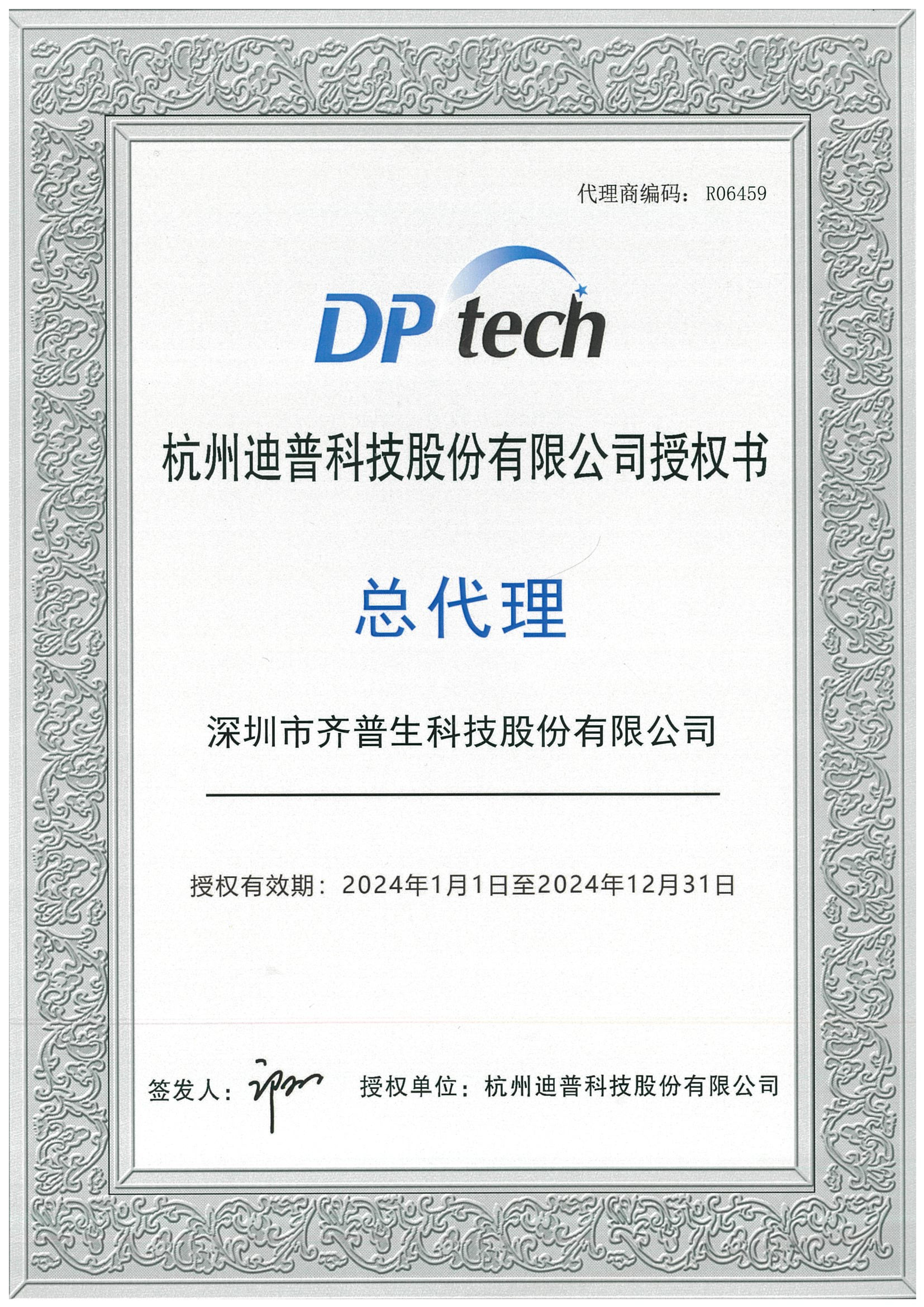• 2024年迪普總代理證書(南京公司)